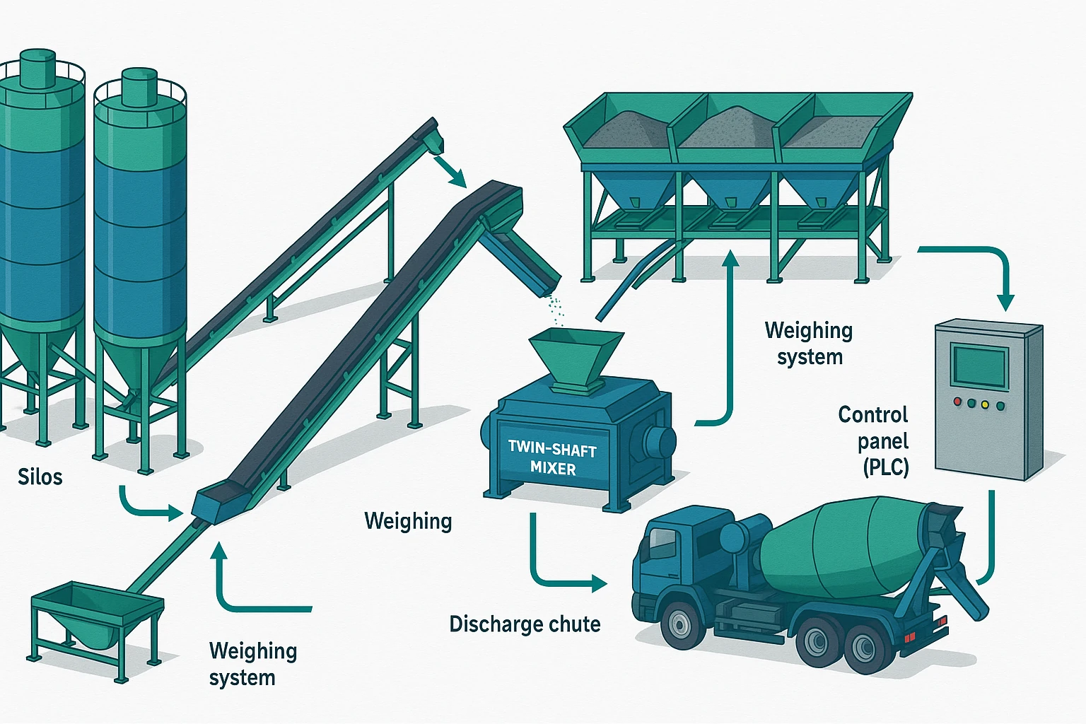 نحوه کار بچینگ پلنت (Concrete Batching Plant Operation) دستگاه بچینگ پلنت، قلب خطوط تولید بتن است و...
